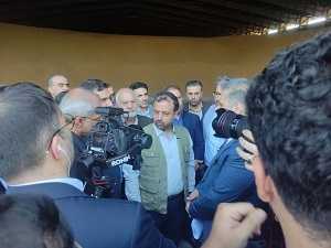 خاندوزی روز شنبه از طریق فرودگاه ماهشهر وارد استان خوزستان شد و از انبارهای بندر امام خمینی (ره) و اسکله گمرکی بازدید کرد.