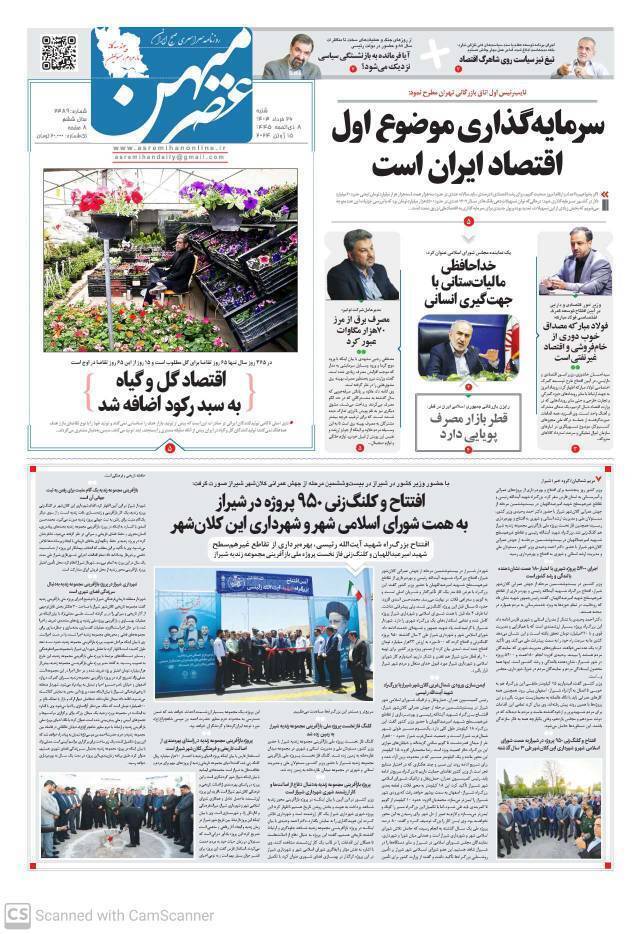 صفحه نخست روزنامه‌های 26 خرداد فارس 1403