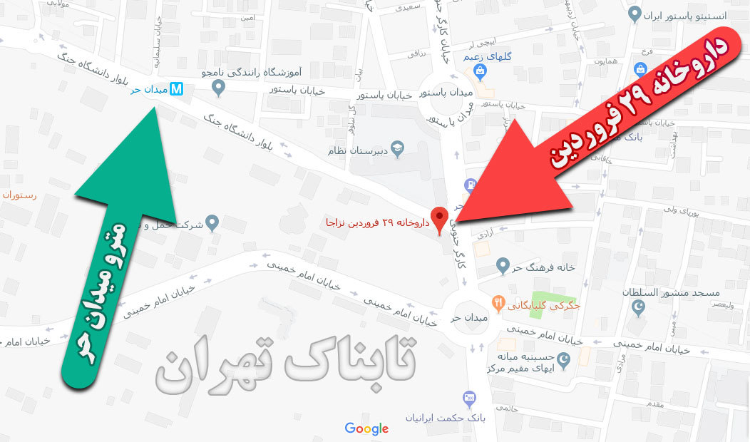 داروخانه شبانه روزی 29 فروردین | آدرس شماره تلفن و مسیر مترو | Nezaja 29 Farvardin Pharmacy