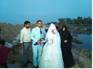 "اعلا ء چنانی" و همسرش با یک فروند قایق به روی آبهای پشت سیلبند روستایشان رفتند و مراسم خطبه عقد و ازدواجشان بر روی قایق برگزار شد و اهالی روستا نیز با ایستادن بر بالای سیلبندها در این مراسم حضور داشتند.